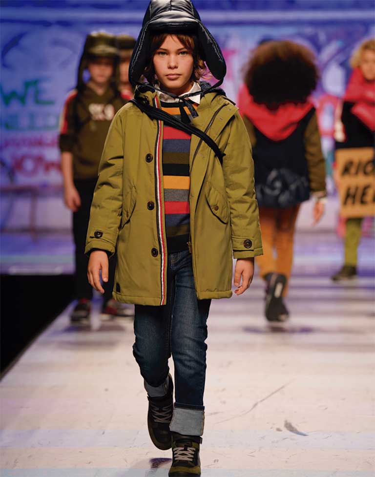 The catwalk at the international trade fair of children’s clothing Pitti Immagine Bimbo takes place in Florence and it is where the new autumn-winter 2020 mix & match inspired collection was presented. Fashion is put to the service of children and uses its claiming power to give voice to the urgent need to care for our planet and bet on sustainable practices with our environment.